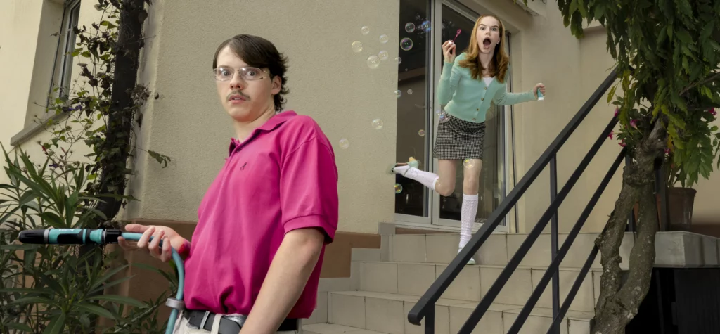 Pour ce projet, les contraintes étaient le thème de l’(in)visible et la mise en abyme. J’ai exploré comment faire exister un objet sans jamais le montrer directement, uniquement à travers le regard des personnages. La mise en abyme se crée en montrant les personnages qui observent l’objet, impliquant que le spectateur observe à son tour et devient partie de la scène. Les personnages, stéréotypés comme des personnes hyper sophistiquées attentives à leur apparence, renforcent l’idée que la valeur d’un objet dépend surtout du regard qu’on lui porte.